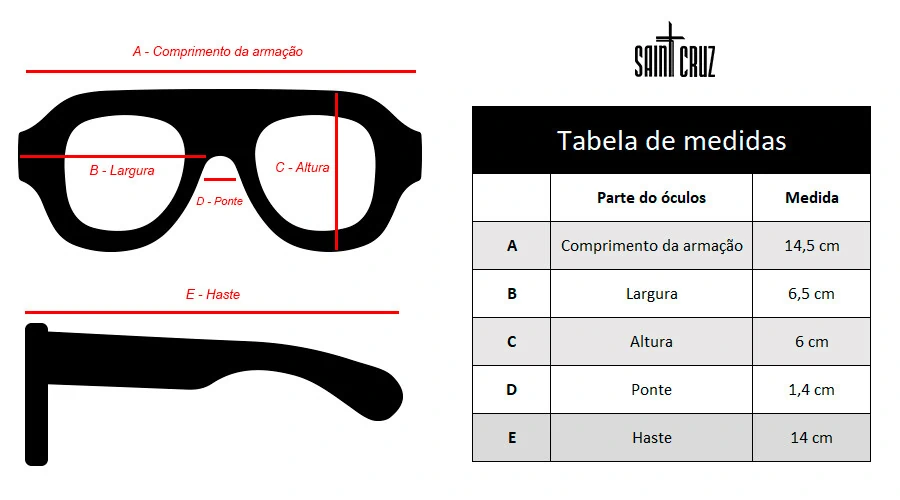 Os óculos Saint Cruz possuem lentes polarizadas com proteção UV400, que protege seus olhos do contato direto com os raios solares.